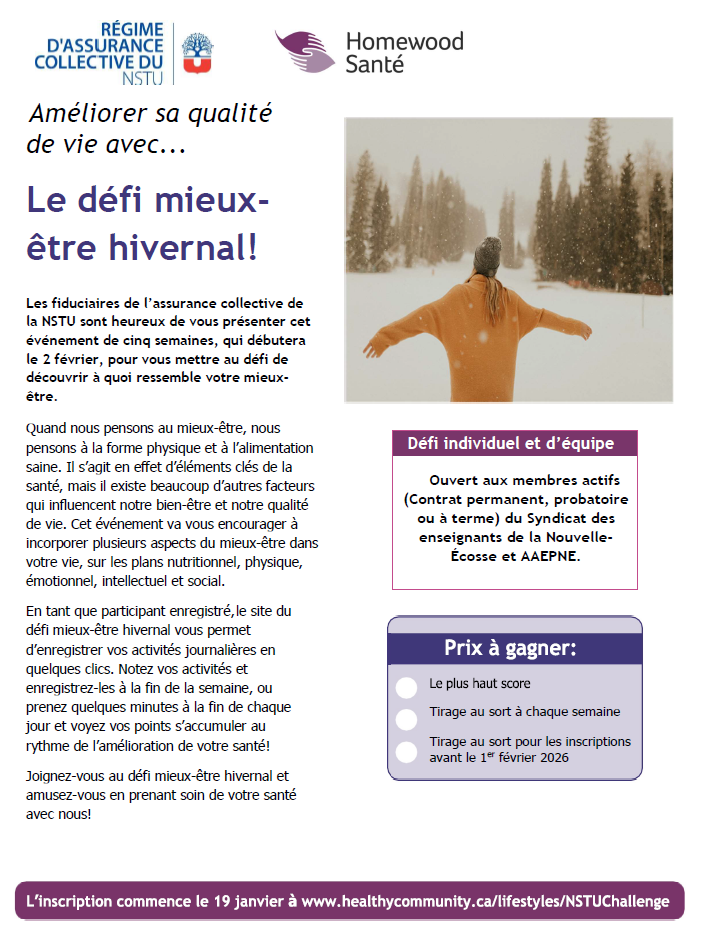 Please be advised that active members of PSAANS are welcome to participate in the Winter Wellness Challenge.